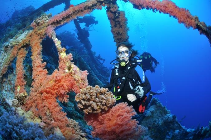 Kdo nechce druhý ponor na vraku, může se potápět na útesu, u něhož kotvíme. Útes vystupuje z pískového dna z hloubky 8 – 12 metrů a je bohatě porostlý sasankami a korály.¨