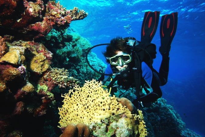 Claudia reef. Ponor vzdálen asi 30 minut plavby. Nevelký útes vystupující z hloubky okolo 20 metrů je možné obeplavat dokola a přitom navštívit krásné jeskyně s tunely v levé části. Tunely jsou velmi jednoduché a bezpečné i pro začátečníky v hloubkách od 4 – 9metrů. V jeskyních a tunelech je možné spatřit rejnoky – trnuchy, kruhatce a očaře v malých hejnech. Severozápadní stěna postupně klesá do hloubky 25 metrů a je lemována tvrdými korály útesovníků a děrovníků. Pod lodí se vznáší hejna parmic za asistování pyskouna obrovského - Napoleon. Kotvící strana útesu je bohužel zničena.