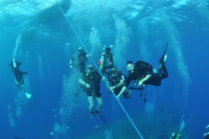 Krásný mělký útes vhodný na noční přespání nabízí několik druhů ponorů.