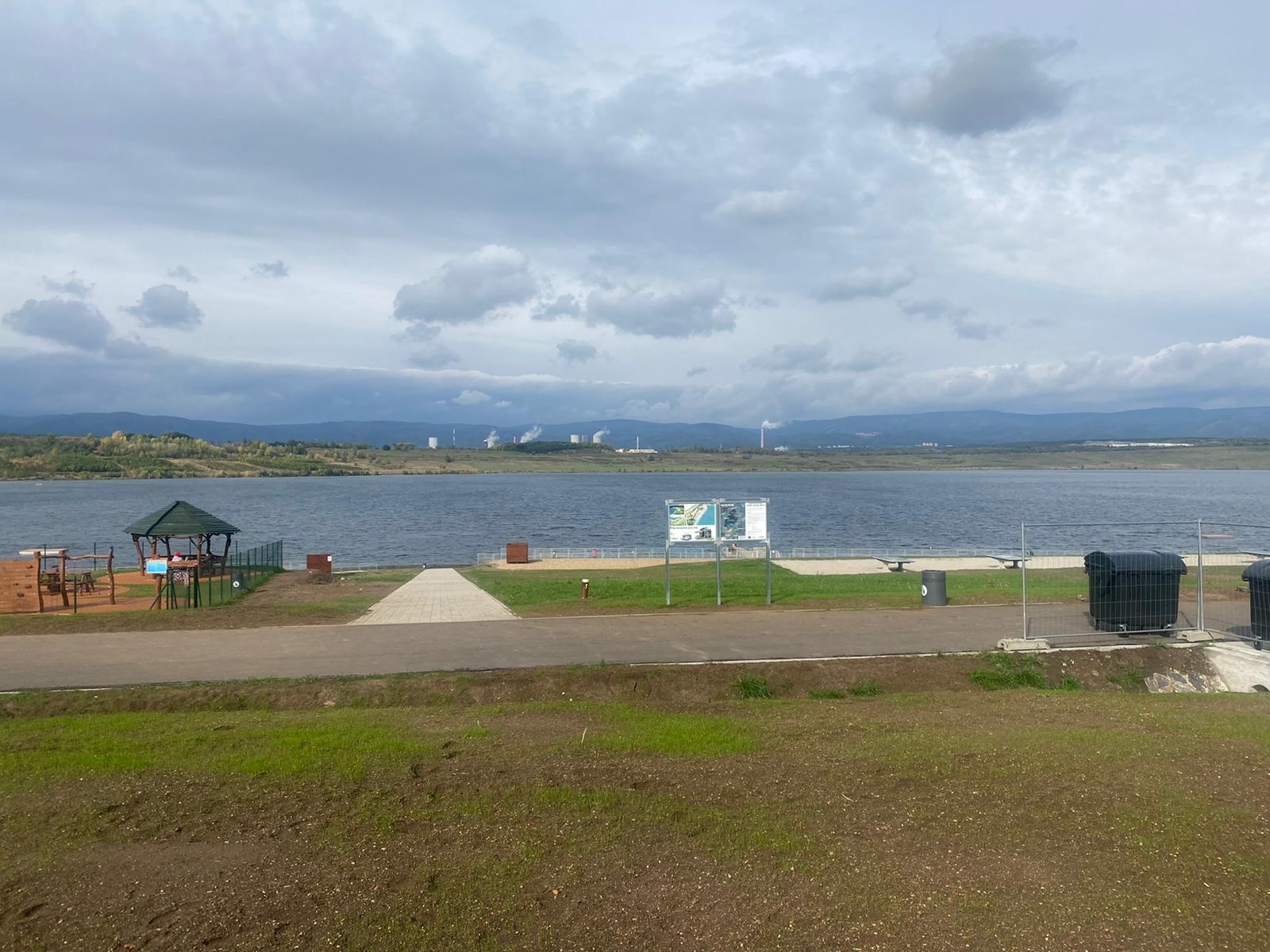 Z parkoviště u rekreační zóny až ke vodě je to cca 150m, díky čemu jsme se zahřáli, jelikož počasí nám moc nepřálo.